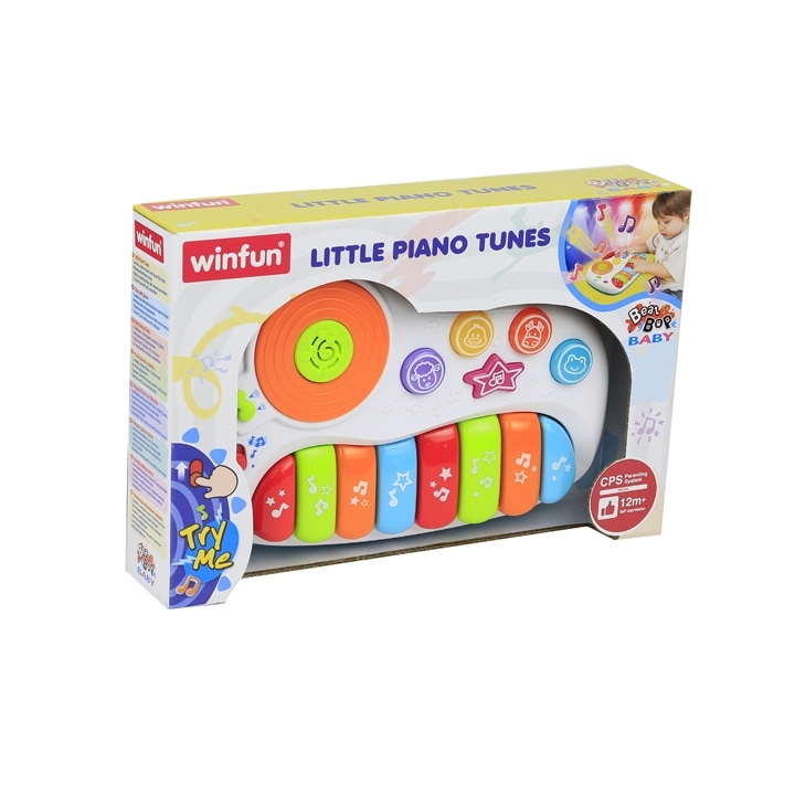 Pian interactiv cu tastatura colorata cu 8 note si 2 moduri de joc: Free Play si Play Right.