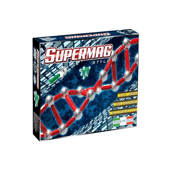 Seturile Supermag sunt caracterizate prin gama variata de piese colorate care urmeaza a fi conectate prin bilute de magnet super solide, astfel contribuind la formarea diverselor modele de figurine.
