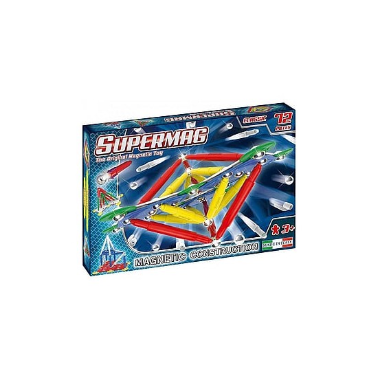 Seturile Supermag sunt caracterizate prin gama variata de piese colorate care urmeaza a fi conectate prin bilute de magnet super solide, astfel contribuind la formarea diverselor modele de figurine.