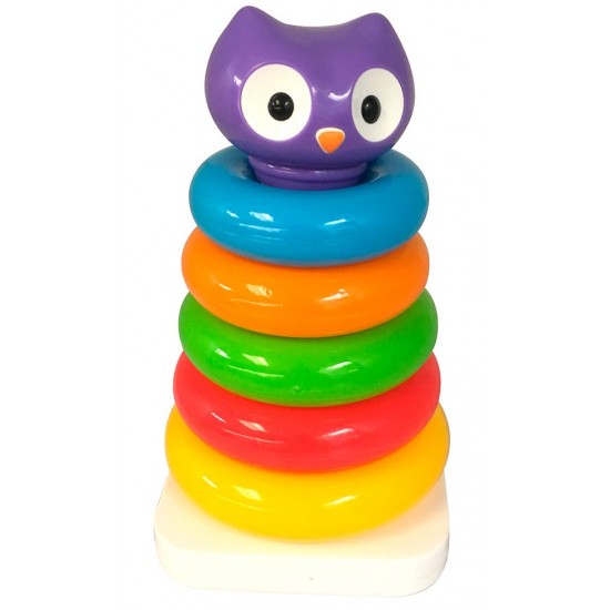 Jucaria interactiva - Piramida Bufnita v-a incanta copilul datorita culorilor sale vii. Functionalitate: dezvolta abilitatile motorii fine, perceptia si coordonarea spatiului. Bufnita poate fi folosita ca zornaitoare. Jucaria este fabricata din plastic de calitate inalta. In set sunt 5 inele multicolore si o fata de bufnita. Recomandat pentru copiii de la 12 luni