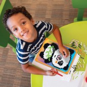 Setul include o tabla speciala pentru plasarea pixelelor, 943 de pixeli colorati si un ghid pas cu pas pentru a crea imaginea unei panda.