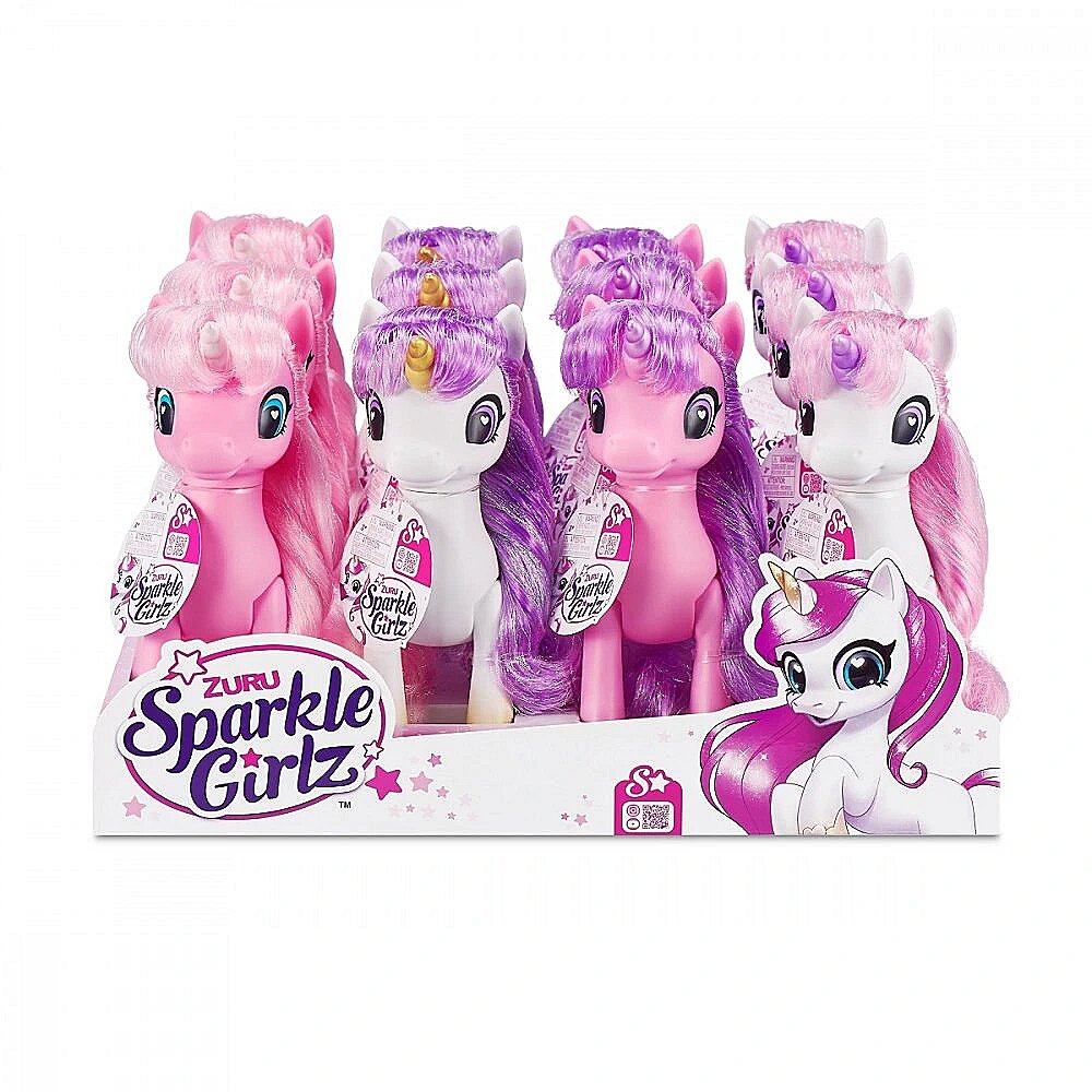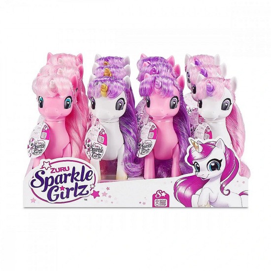 Sparkle Girlz Unicorn sunt unicorni colorati cu par frumos! Toti unicornii au par si coarne stralucitoare, asa ca stralucesc cu adevarat! Au, de asemenea, detalii grozave pe copite. Fiecare unicorn are un cap articulat pentru ipostaze distractie! Poate sta in picioare sau intins! Straluceste in fiecare zi!