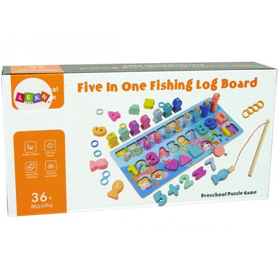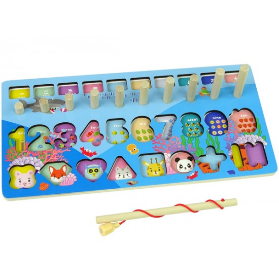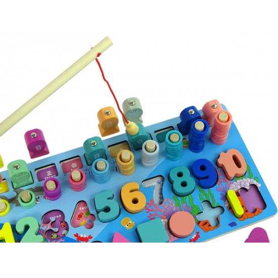 Set educativ din lemn 5 in 1 Numaratoare, Forme, Pescuit, Cifre, Matematica