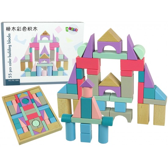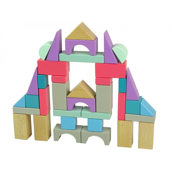 Set Castel blocuri din lemn pastelate diverse forme 55 el