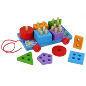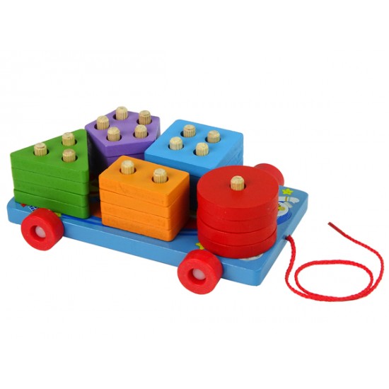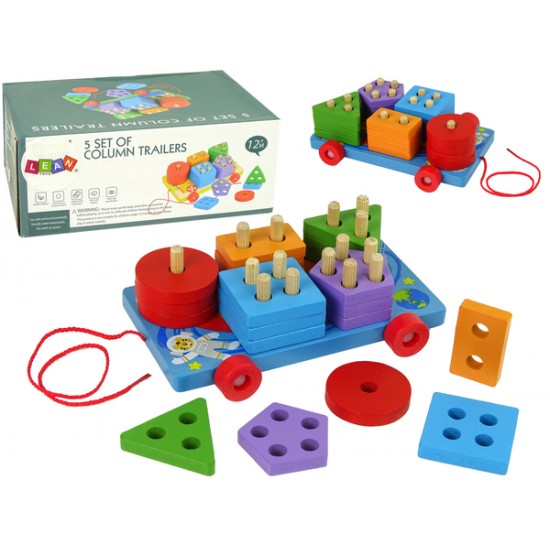 10163 Set support cu roti si coloane cu blocuri din lemn, forme