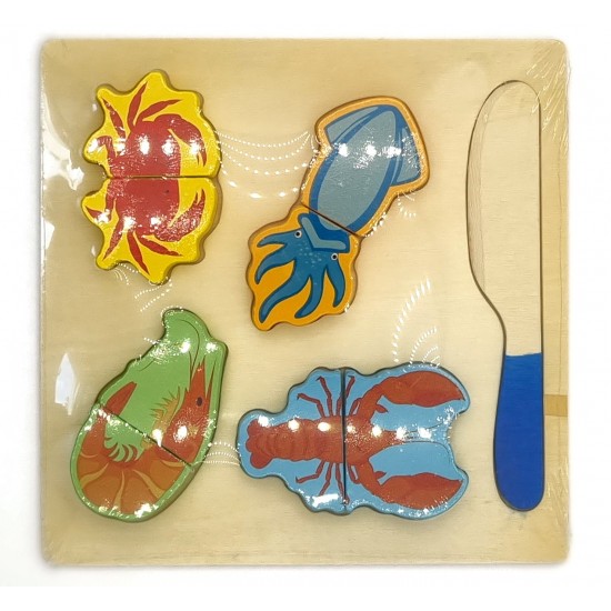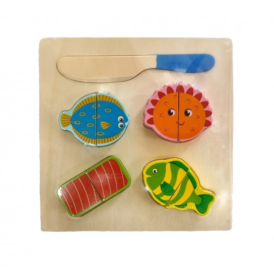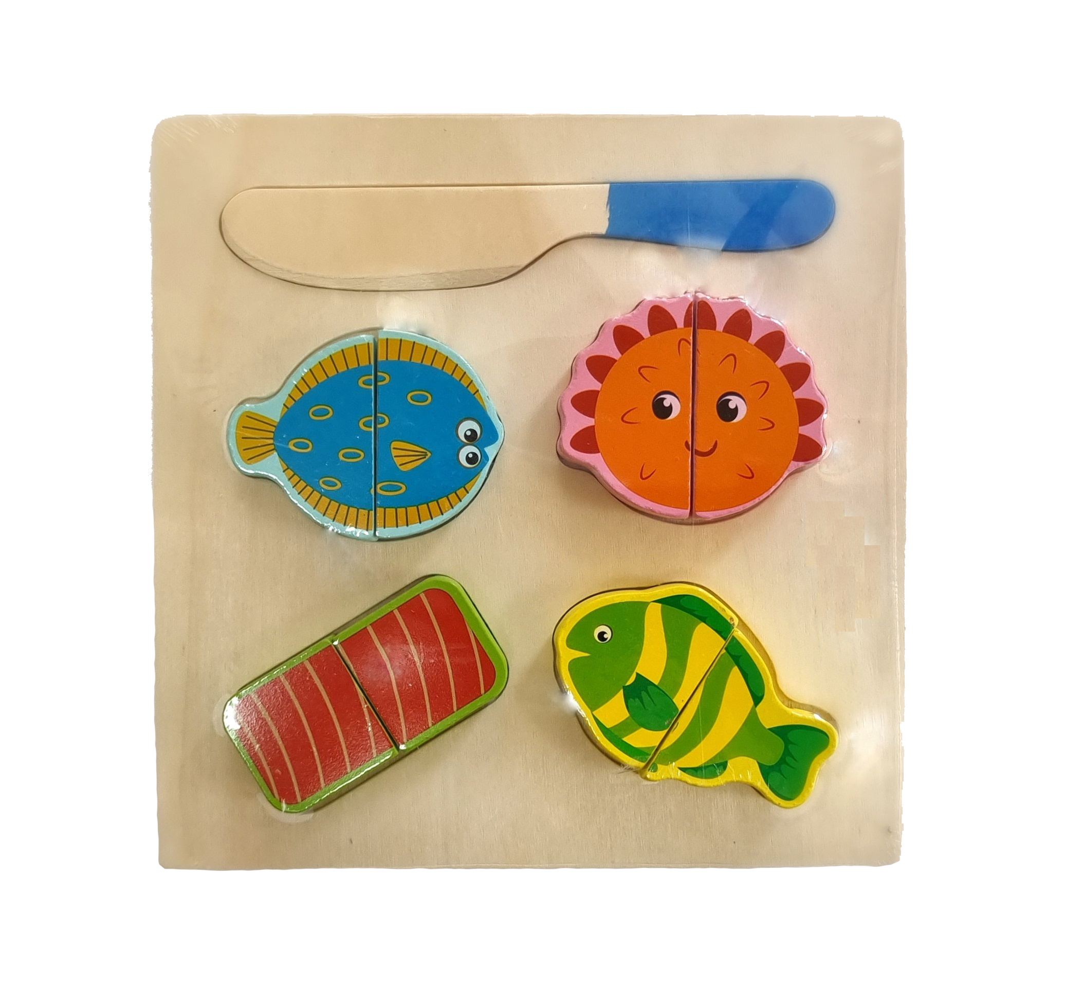 Jumatatile de alimente sunt atasate impreuna cu velcro, astfel incat pot fi taiate cu usurita dar si conectate ulterior. Potrivirea jumatatilor va fi o adevarata provocare pentru cei mici, astfel isi vor dezvolta abilitatile fizice si gandirea logica.