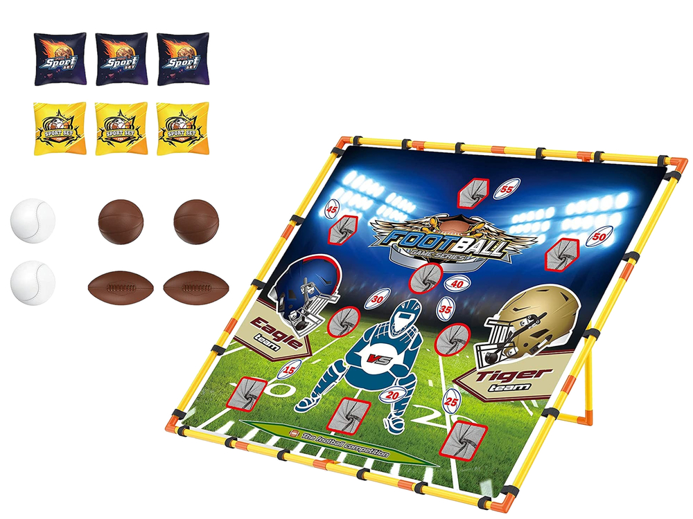 Jocul sportiv pentru intreaga familie poate fi practicat oriunde te-ai afla. Aseaza tabla de joc pe o suprafata corespunzatoare si incearca sa tintesti cat mai multe gauri de pe ea. Este o adevarata provocare sa iti testezi abilitatile si reactia. Te poti antrena singur sau poti invita toti membrii familiei sau prietenii la un adevarat meci cu echipe si premii.