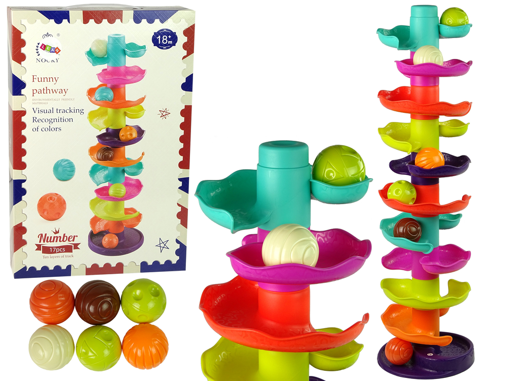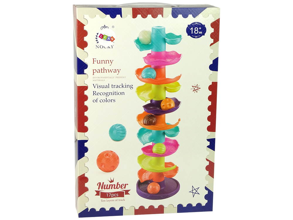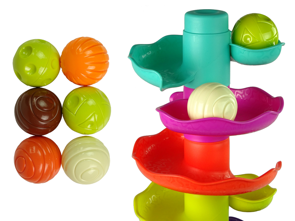 Sa descoperi lumea care te inconjoara poate fi atat de distractiv! Alege jucariile potrivite pentru a invata si a te distra in acelasi timp. Jucaria Turn cu traseu si mingi colorate va contribui la dezvoltarea tactila si vizuala a copilasilor, iar mingile placute la atingere vor trezi curiozitatea micilor exploratori de a le testa in actiune. Lasa bilele sa urmeze traseul si bucura-te de miscarile si sunete placute pe care le scot atunci cand parcurg traseul pana la capat.