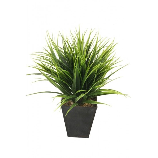 Iarba decorativa artificiala de 10 cm este solutia ideala pentru decoruri minimaliste. Ghiveciul din zinc adauga o nota industriala, iar frunzele din mase plastice confera prospetime si textura naturala.