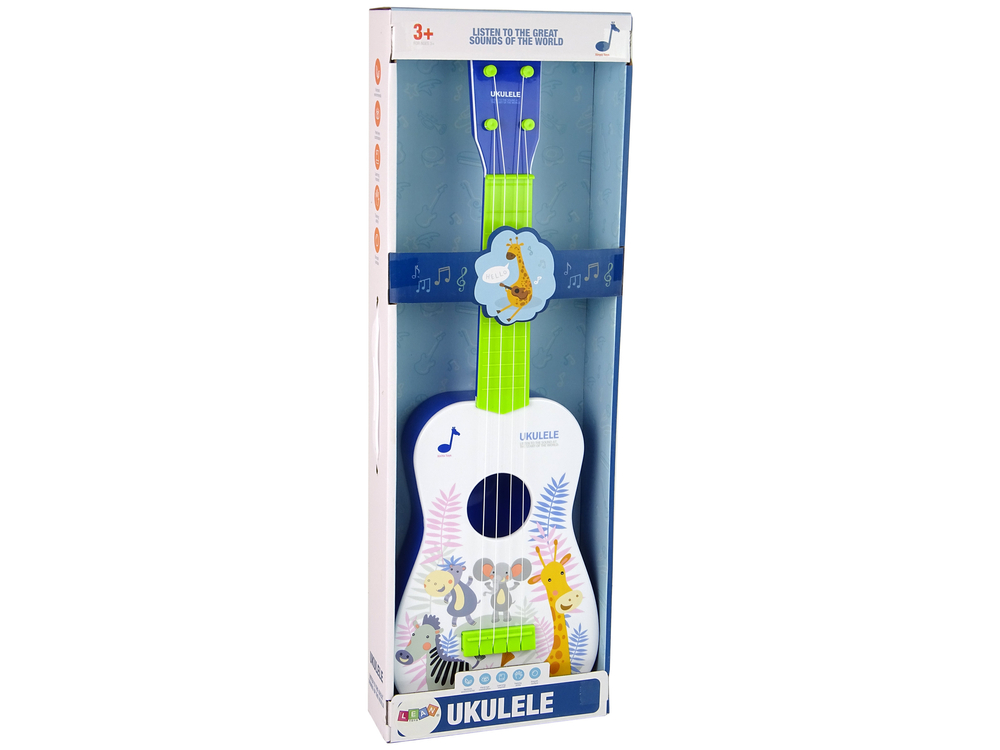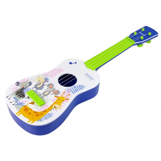 Chitara de jucarie Ukulele albastra cu imagini animale