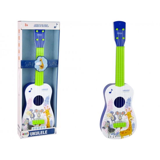 10959 Chitara de jucarie Ukulele albastra cu imagini animale
