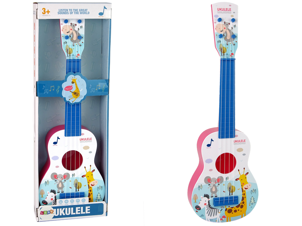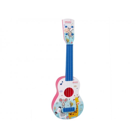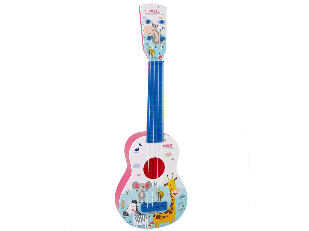 10961 Chitara de jucarie Ukulele roz cu imagini animale