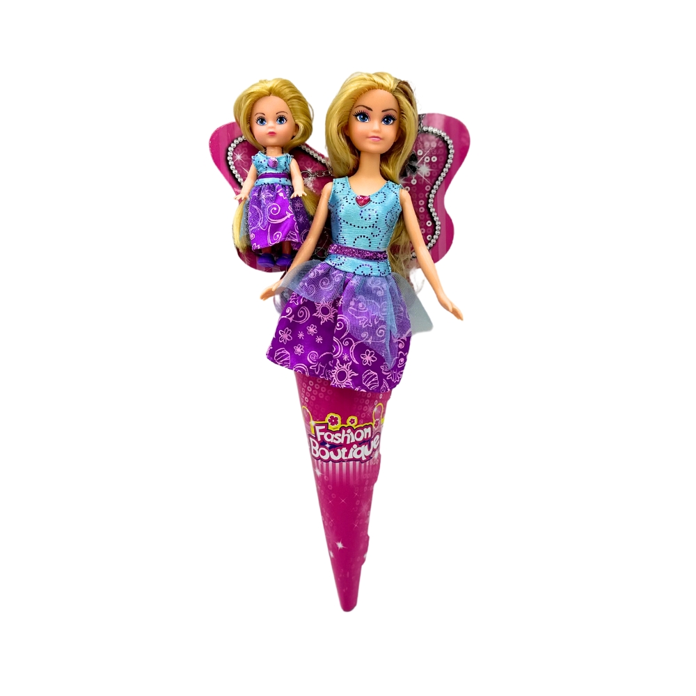 Aceasta papusica este un cadou excelent pentru fetitele care iubesc sa creeze lumi fantastice si sa joace roluri diverse. Aceasta papusa este disponibila in doua variante cu vestimentatie diferita si o papusica mai mica, de 9 cm pentru o distractie mai interactive, cu par lung si matasos care poate fi pieptanat si coafat.