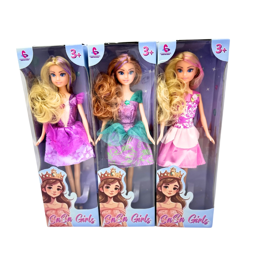 Aceasta papusica este un cadou excelent pentru fetitele care iubesc sa creeze lumi fantastice si sa joace roluri diverse. Aceasta papusa este disponibila in trei variante cu vestimentatie diferita cu sclipici, cu par lung si matasos care poate fi pieptanat si coafat.