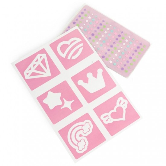 Set de decoratiuni si sabloane pentru realizarea tatuajelor temporare pe piele special create pentru pielea copiilor.