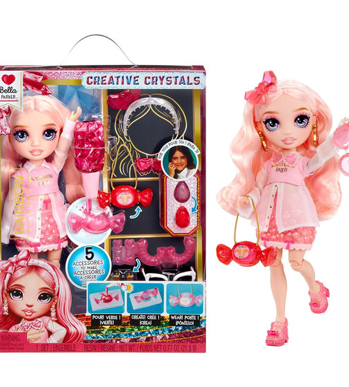 Papusa RAINBOW HIGH "Creative Crystals" - BELLA - este o frumusete eleganta cu par si haine in nuante de roz.