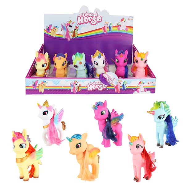12471Z Jucarie ponei Unicorn 13cm cu par lung 6 tipuri diverse culori