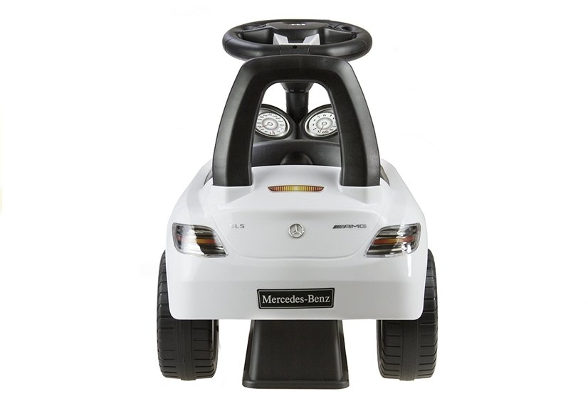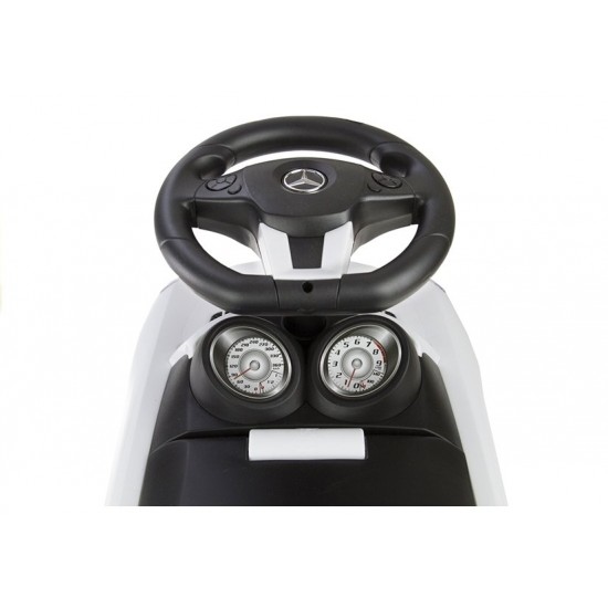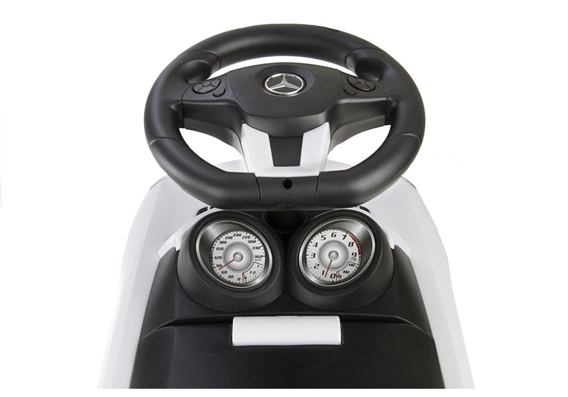 Mai mult, mercedesul este echipat cu sistem de lumini si sunete care il vor amuza si distra pe micul explorator, devenind astfel jucaria lui preferata.