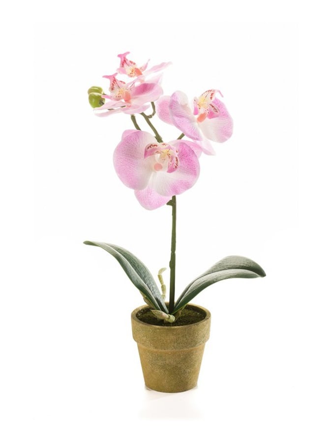 Orhidee artificiala mini Phalaenopsis, roz, 25cm, in ghiveci