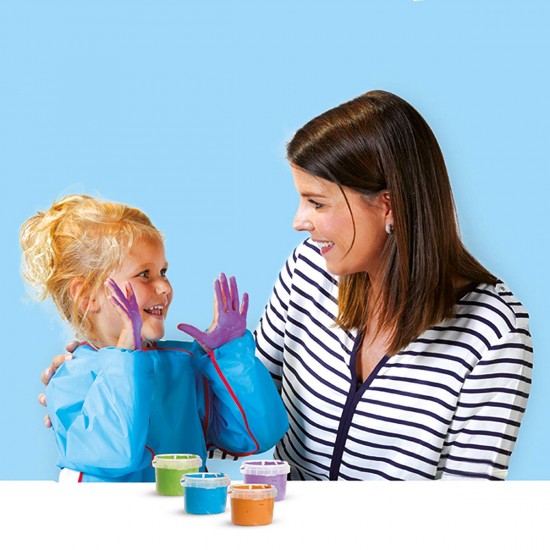 Acestea nu sunt vopsele obisnuite, ci vopsele aerisite pentru a picta cu degetele, care sunt ideale pentru introducerea unui copil la desen. Datorita texturii dense a vopselelor, acestea nu curg din borcan daca se rastoarna accidental, ceea ce va incanta parintii.