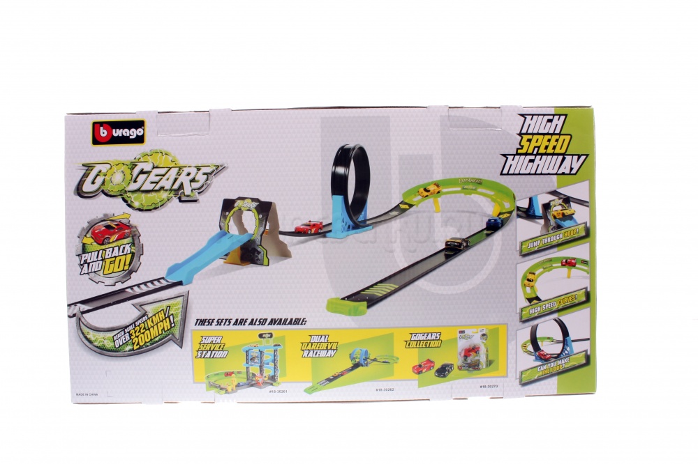 Setul de joaca seria GoGears VIRAJUL ABRUPT este o pista cu o bucla, traversa si poarta, prin care masina din seria GoGears accelereaza pina la o viteza de 322 km / h, sare prin inel si depaseste bucla in 360 de grade!