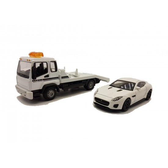 Acest set unic, evacuator cu masina Jaguar F-Type R Dynamic (V6) va aduce emotii positive direct in mainile celor mici. Acest set ofera o experienta de joc captivanta, stimuland creativitatea si incurajand jocul de rol. Camionul poate sa coboare platforma pentru a permite vehiculului sa ocupe spatiu pe platforma cu usurinta.