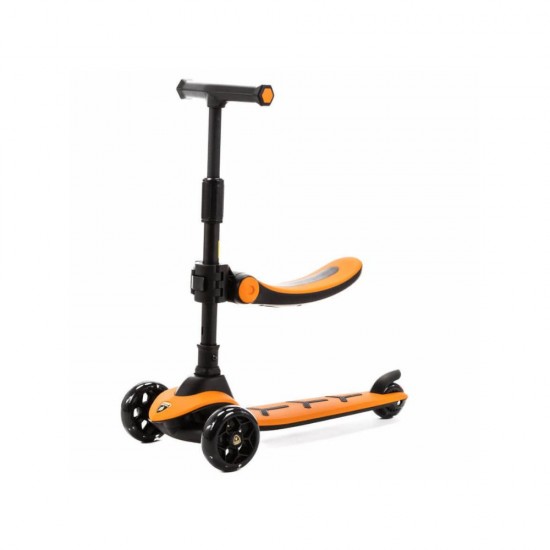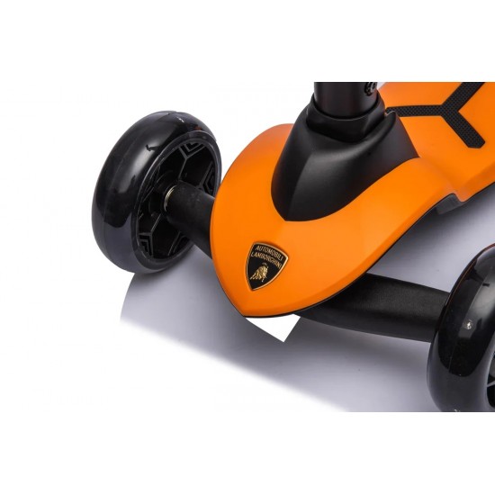 Trotineta Lamborghini 2-in-1 pentru copii cu scaun si 3 roti LED, Orange