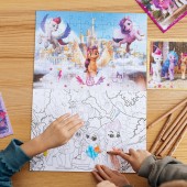 Puzzle-urile au imaginea alb-negru pe partea din spate si devine un divertisment suplimentar pentru copii - dupa ce ati pus impreuna un puzzle, acesta poate fi pictat.