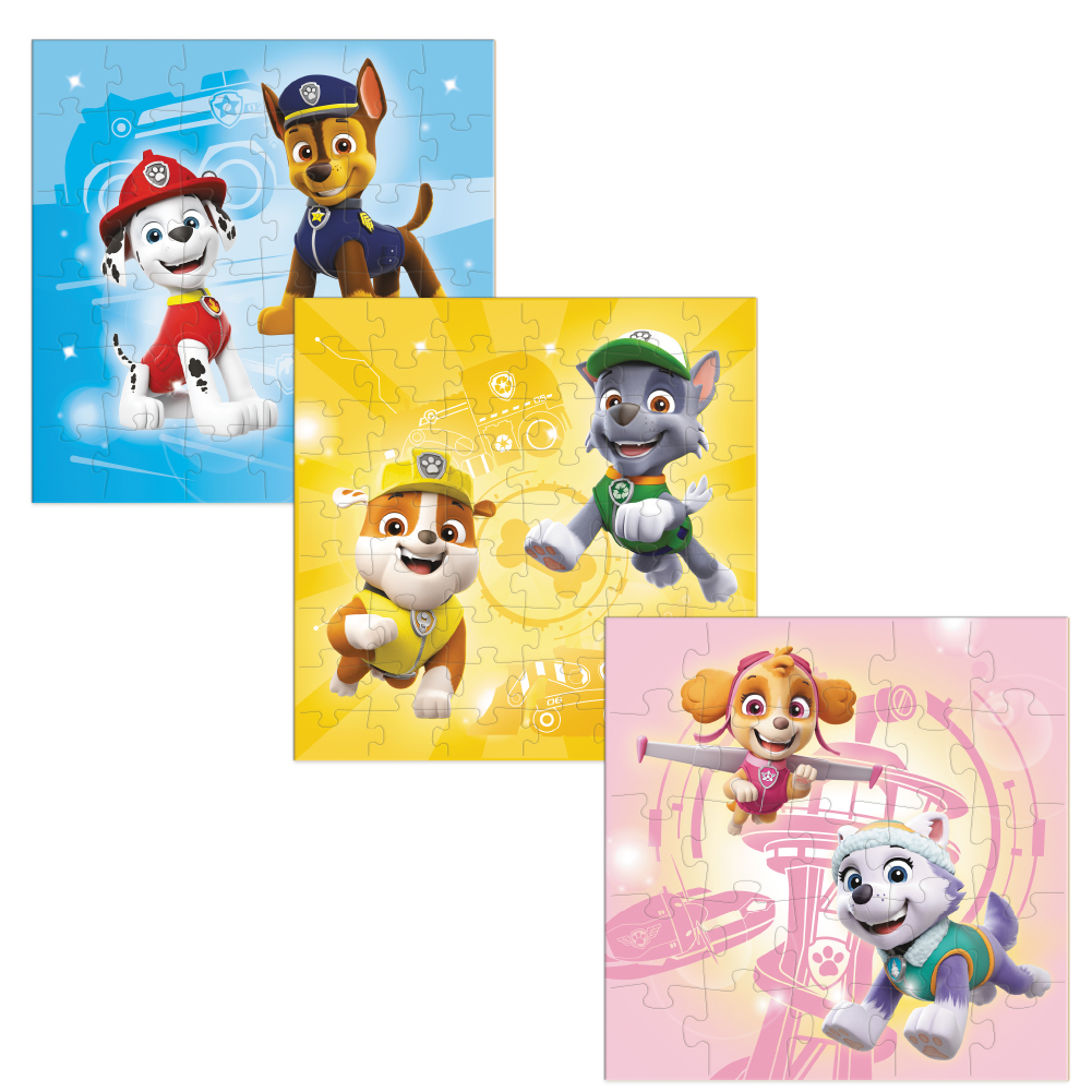 Cele mai amuzante momente din aventurile catelusilor Paw Patrol pe puzzle-uri stralucitoare! Trei puzzle-uri intr-o cutie, desigur! Special conceput pentru a deveni mai dificil in timp, setul include trei puzzle-uri: 25, 36 si 54 de piese. Si toate prezinta personajele Paw Patrol preferate.