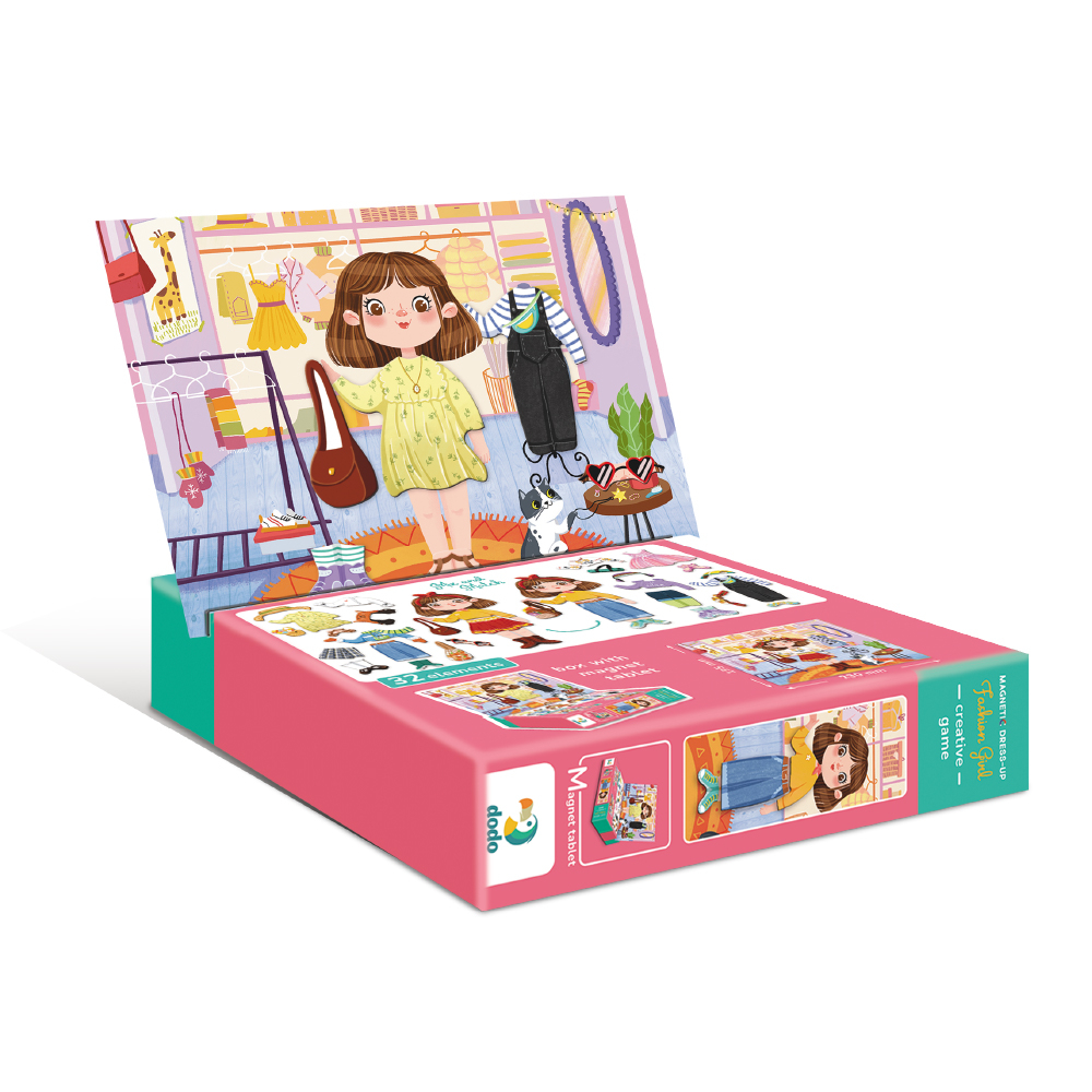 Jocul magnetic ,,Imbraca Fetita" este un set captivant pentru fetite, care le ajuta pe micile fashioniste sa-si dezvaluie creativitatea si sa creeze cele mai stilate look-uri. Acest set include o tabla magnetica si 32 de magneti cu diferite articole de imbracaminte, permitand copiilor sa-si creeze propriile look-uri de moda si sa experimenteze stilul.