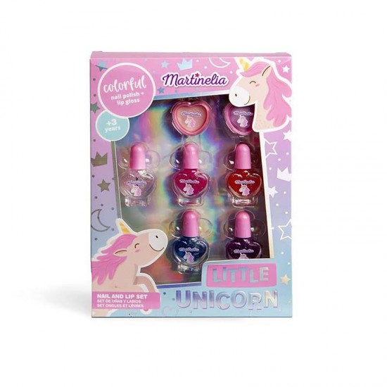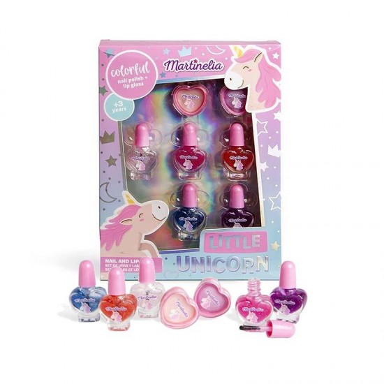 Set cu 5 lacuri de unghii si 2 luciuri de buze Little Unicorn Martinelia