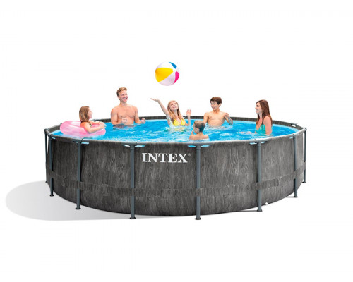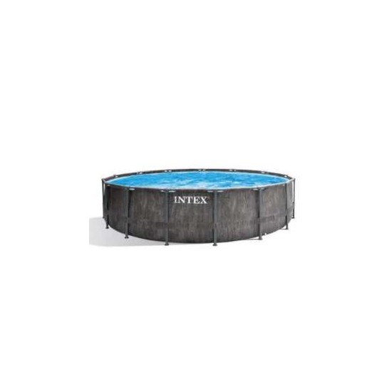 26742 Piscina cu cadru metalic Intex Greywood Prism Frame, aspect lemn gri, 457 x 122 cm