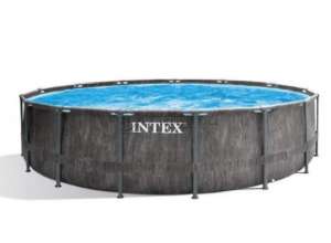 Piscina cu cadru metalic Intex Greywood Prism Frame, aspect lemn gri, 457 x 122 cm