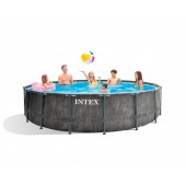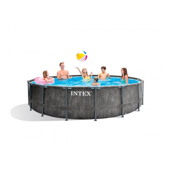 - Piscina cu cadru metalic Intex Greywood Prism Frame, aspect lemn gri, 457 x 122 cm