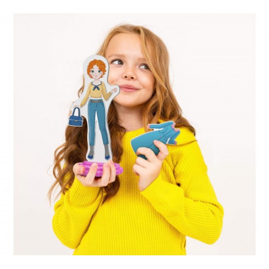 Poti imbraca aceasta papusa frumoasa dupa cum doresti si poti crea multe povesti. Piesele separate iti permit sa experimentezi toate combinatiile pe care le doresti, amestecand cele 29 de piese magnetice din pachet.