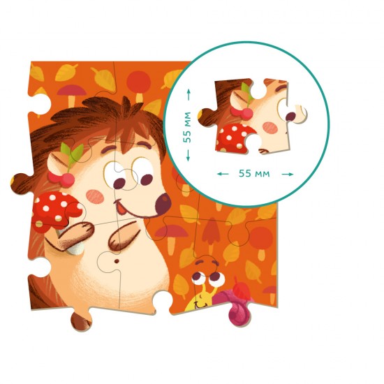 Puzzle-urile 2 in 1 combina doua distractii preferate: mai intai, copiii vor trebui sa alcatuiasca un puzzle, apoi sa picteze o imagine alb-negru pe partea opusa. Imaginile pitoresti capteaza atentia copilului, iar datorita detaliilor mari si cartonului gros, puzzle-ul va rezista oricarui joc. Ajuta copiii sa-si dezvolte abilitatile motorii fine, coordonarea si gandirea spatiala.