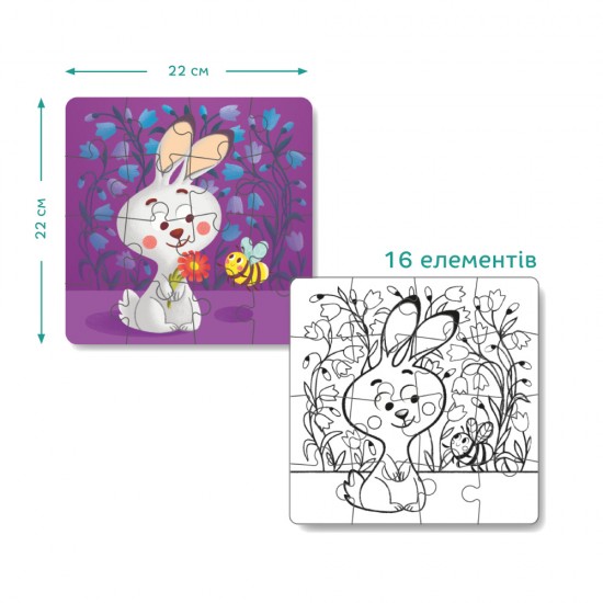 Puzzle 2 in 1 de colorat, Iepuras, 16 el. Dodo
