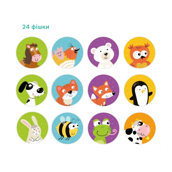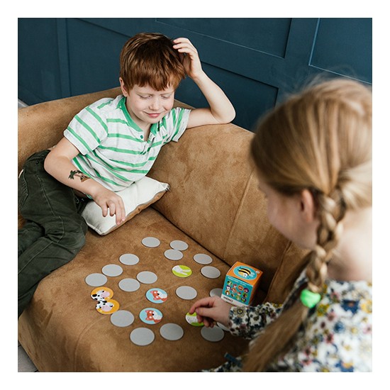 Jocul Mini Memo "Animale" este format din carti rotunde din carton laminat.