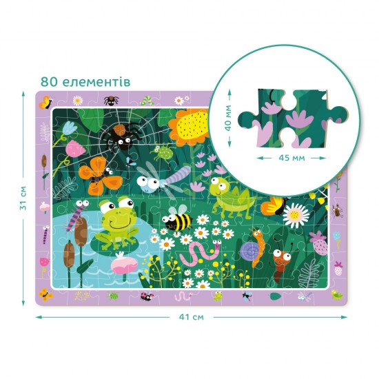 Ce fac insectele, ascunzandu-se in adancurile gradinii, unde nu le poti vedea? Desigur, fac o petrecere nebuna. Ei impodobesc totul in jur cu flori si se aduna in jurul iazului. Ai vazut toate insectele? Particularitatea puzzle-ului de observatie este cadrul colorat pe care sunt reprezentate elementele puzzle-ului. Sarcina copilului este sa gaseasca imagini din cadru pe un puzzle mare. Jocul cu un astfel de puzzle ii invata pe copii sa fie atenti la detalii si viteza de reactie.