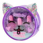 Setul de cosmetica "My Best Friends" este prezentat intr-o husa de silicon cu urechiuse ce contine paiete colorate. Setul include: 3 lacuri de unghii, separator pentru degete, gentuta.