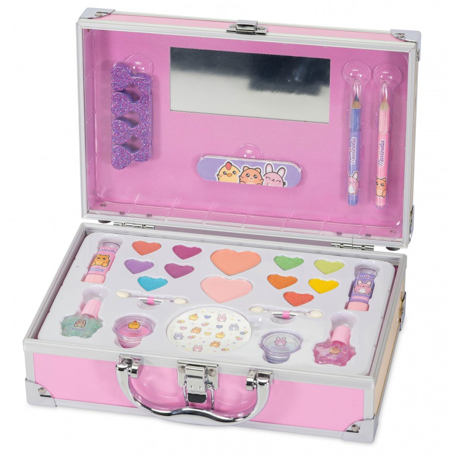 Toate acestea sunt aranjate frumos intr-o valiza pe care fetita o poate lua oricand cu ea, astfel fiind mereu pregatita sa se machieze frumos. Setul contribuie la dezvoltarea creativitatii si laturilor artistice ale copilului, asigurand o crestere sanatoasa, inteligenta si sigura.