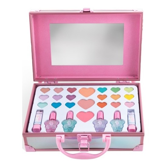 Cu aceasta trusa uimitoare, micile printese vor simti magia unicornului! Vei gasi toate elementele esentiale pentru o dupa-amiaza distractiva si creativa, 18 farduri de pleoape in toate culorile curcubeului, 4 lacuri de unghii cu sclipici, 3 farduri de obraz si 2 rujuri, cu oglinda inclusa!