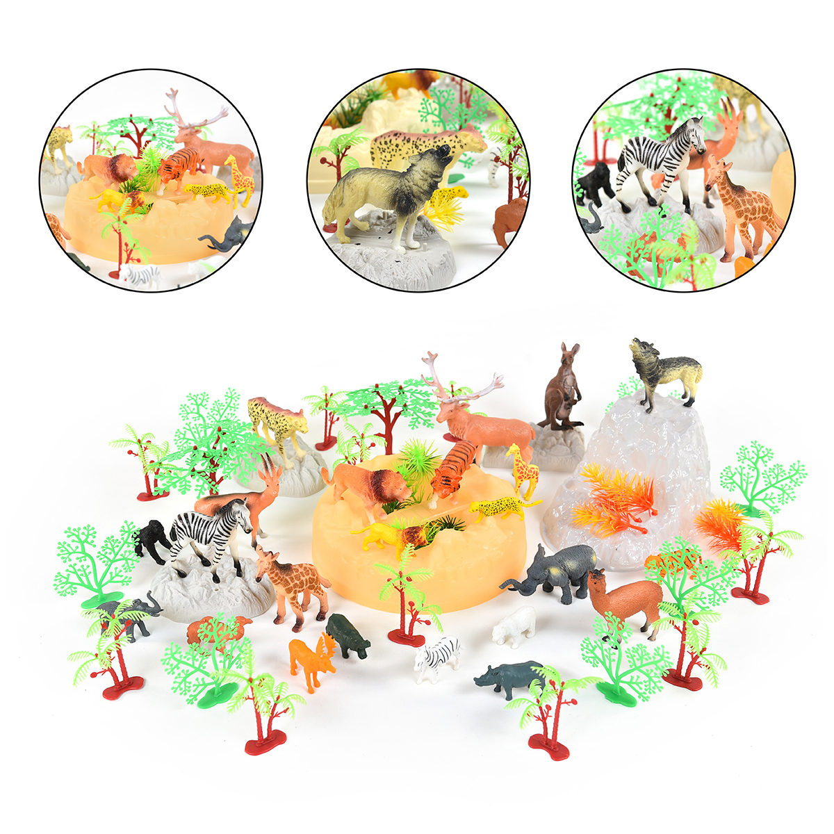 57 de elemente! Animale, copaci si alte accesorii pentru un joc creativ.
