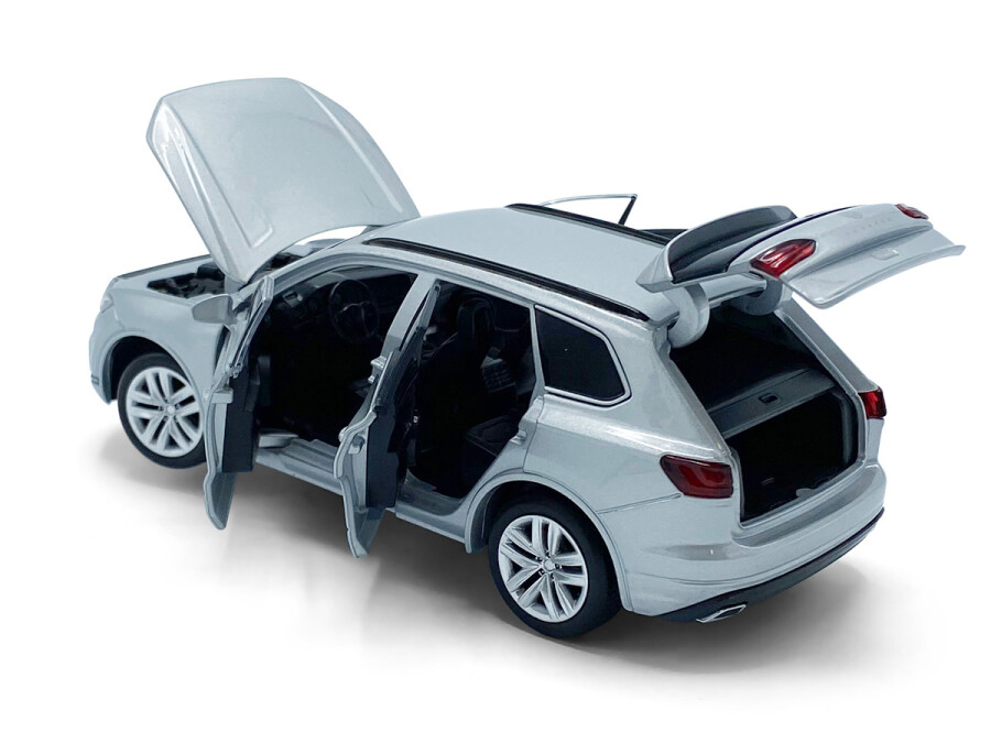Macheta auto VW Touareg, 1:32, Silver, directie activa roti fata, suspensii, lumini si sunet