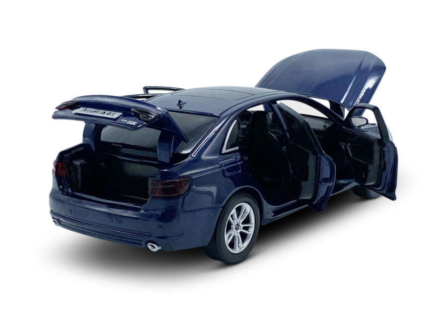 Macheta auto Audi A4, 1:32, Blue directie activa roti fata, suspensii, lumini si sunet