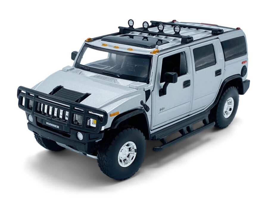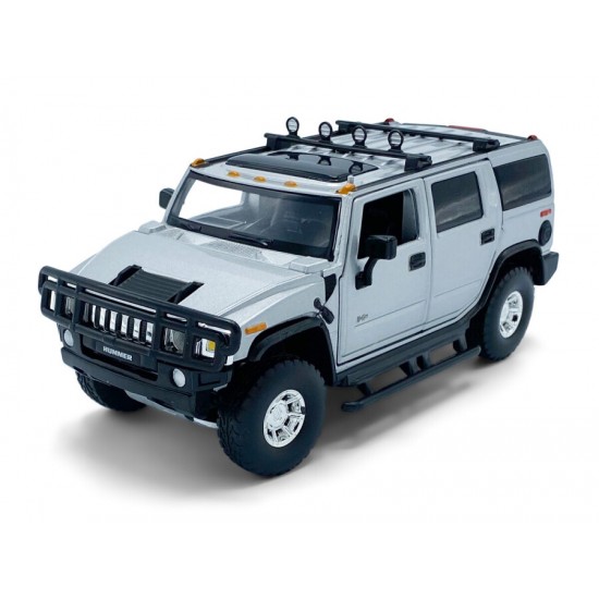Macheta auto Hummer H2, 1:32, Silver, directie activa roti fata, suspensii, lumini si sunet