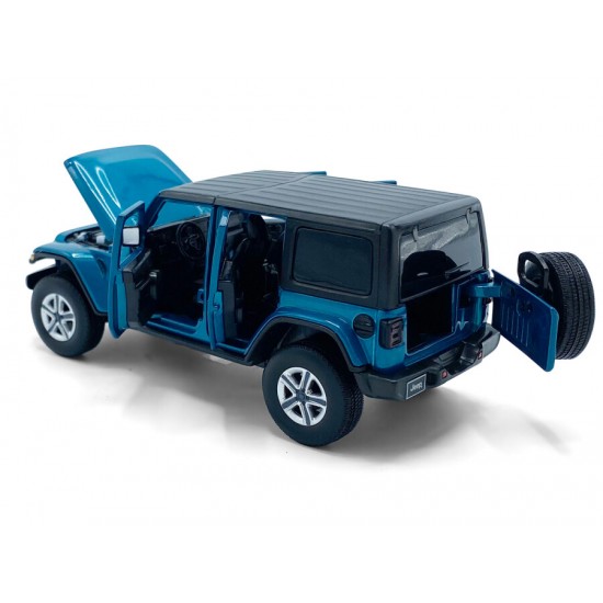 Macheta auto Jeep Wrangler Sahara, 1:32, Blue directie activa roti fata, suspensii, lumini si sunet