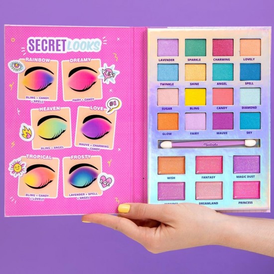 Paleta Wallet My Secret Diary include 16 culori diferite de fard de pleoape intr-un format compact, 6 luciu de buze si 1 aplicator de fard de pleoape dublu.