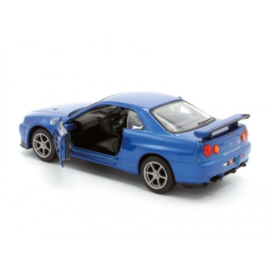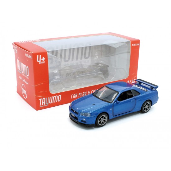 Macheta auto Nissan GT-R34 V-Spec II, 1:36, Blue, Tayumo Mecanism pull-back, sincron