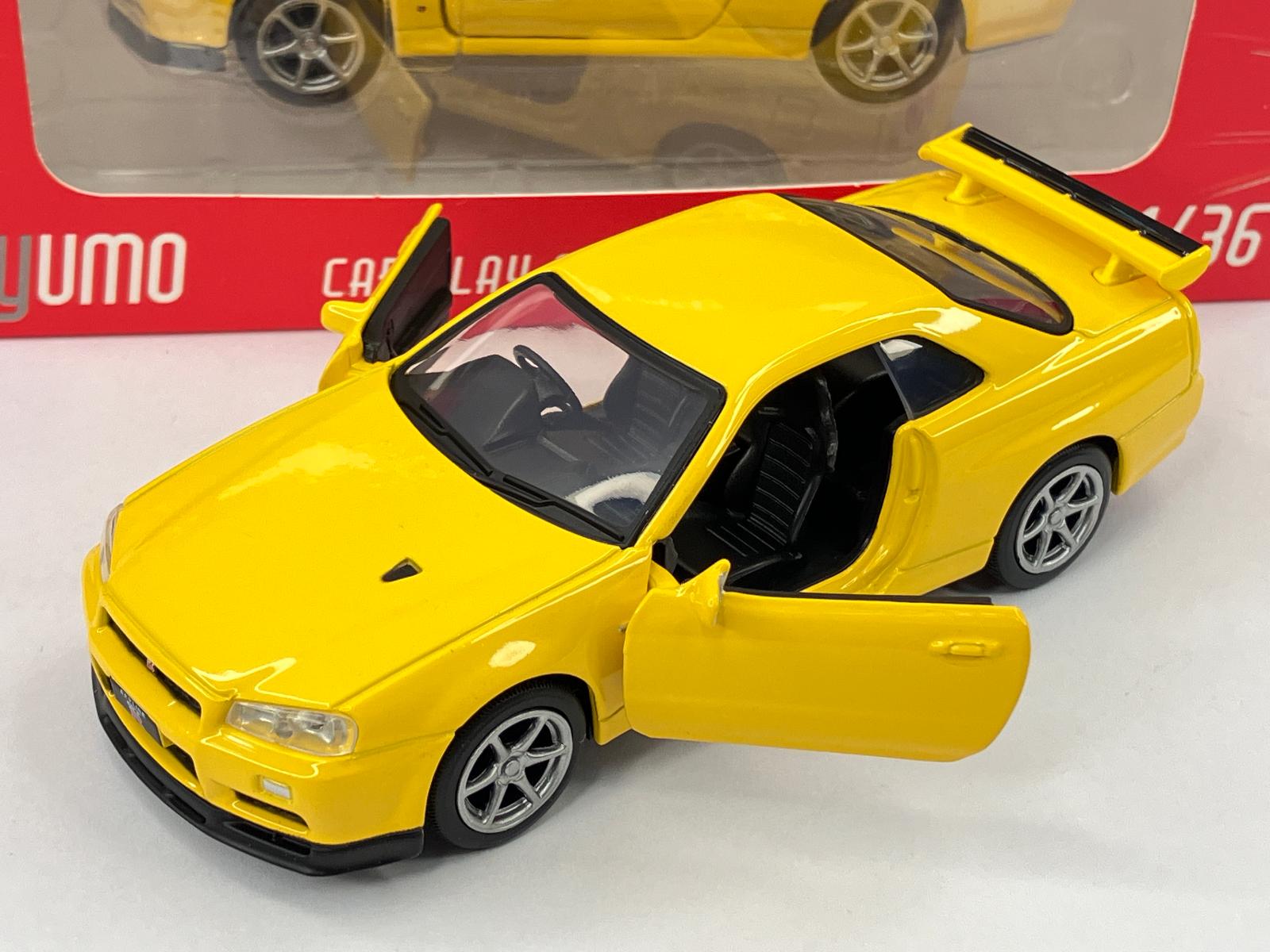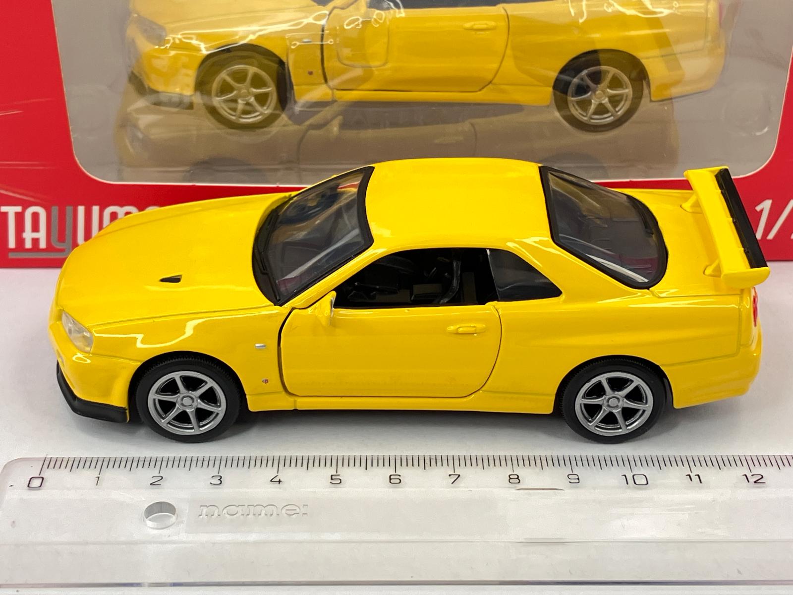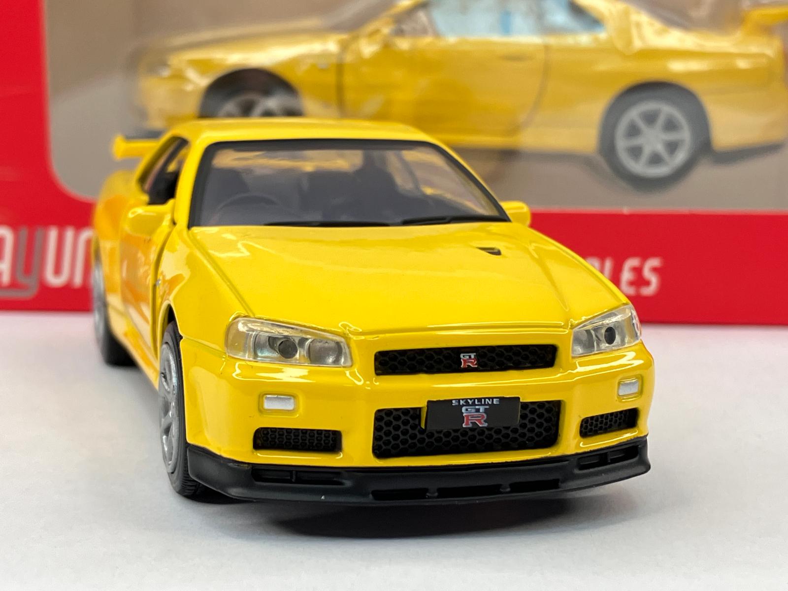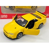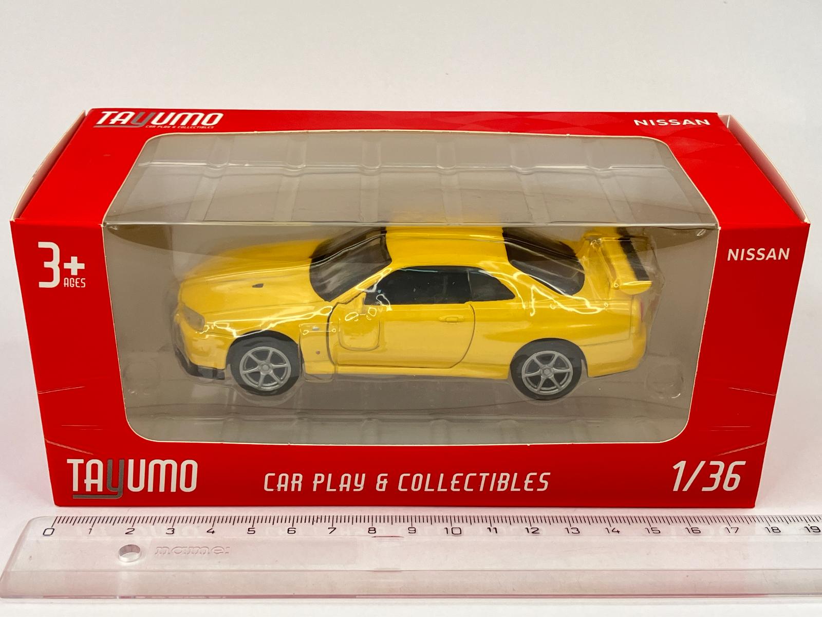 Macheta auto Nissan GT-R34 V-Spec II, galben, 1:36, mecanism pull-back, RHD, TAYUMO